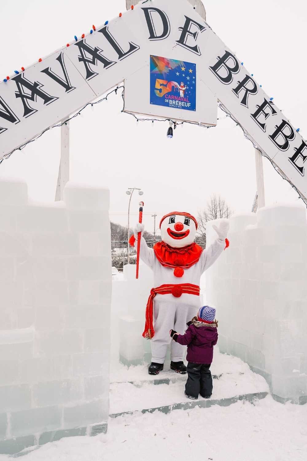 Bonhomme Brébeuf a eu un palais de glace pour sa 50e édition en 2023. L’arche est faite en bois et elle est ornée d’un Bonhomme.