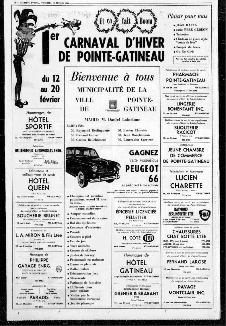 Source: La revue de Gatineau10e et dernière édition : 13 au 23 février 1975
